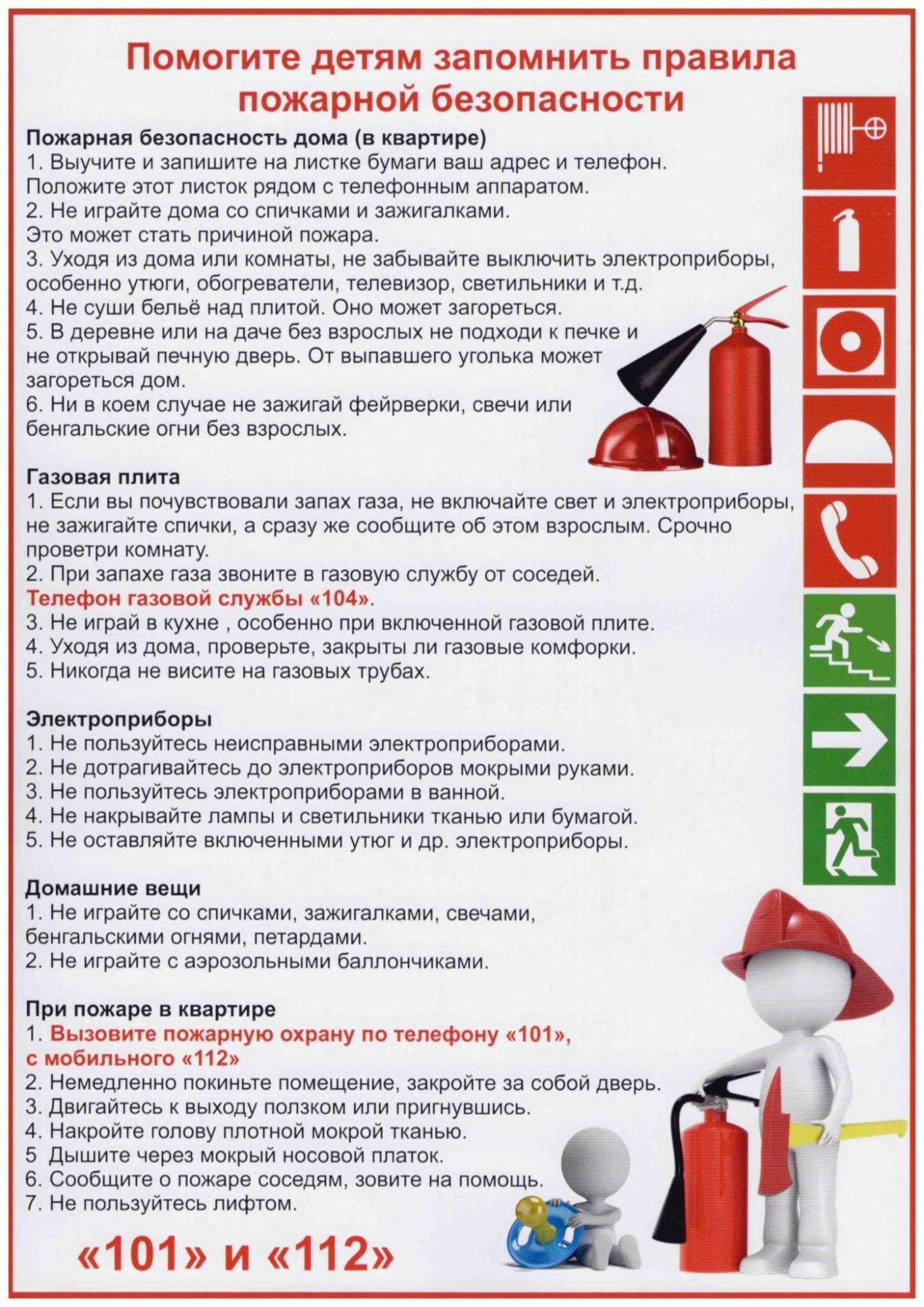 - инструктажи, занятия-беседы: «С огнем не шути», «Действия при возникновение пожара», «Что такое огонь?» учили правилам поведения при пожаре; объясняли важность и необходимость знаний о себе: фамилию, имя, домашний адрес, номер телефона, учили набирать номер пожарной службы, формировали навыки общения с «дежурным по пожарной части» в экстремальной ситуации (в игровой форме).