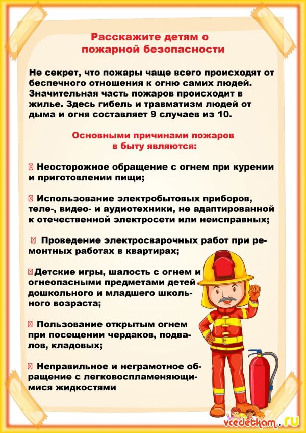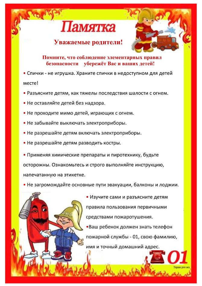 пожаров; знакомство с правилами поведения при пожаре; привлечение внимания родителей к изучению